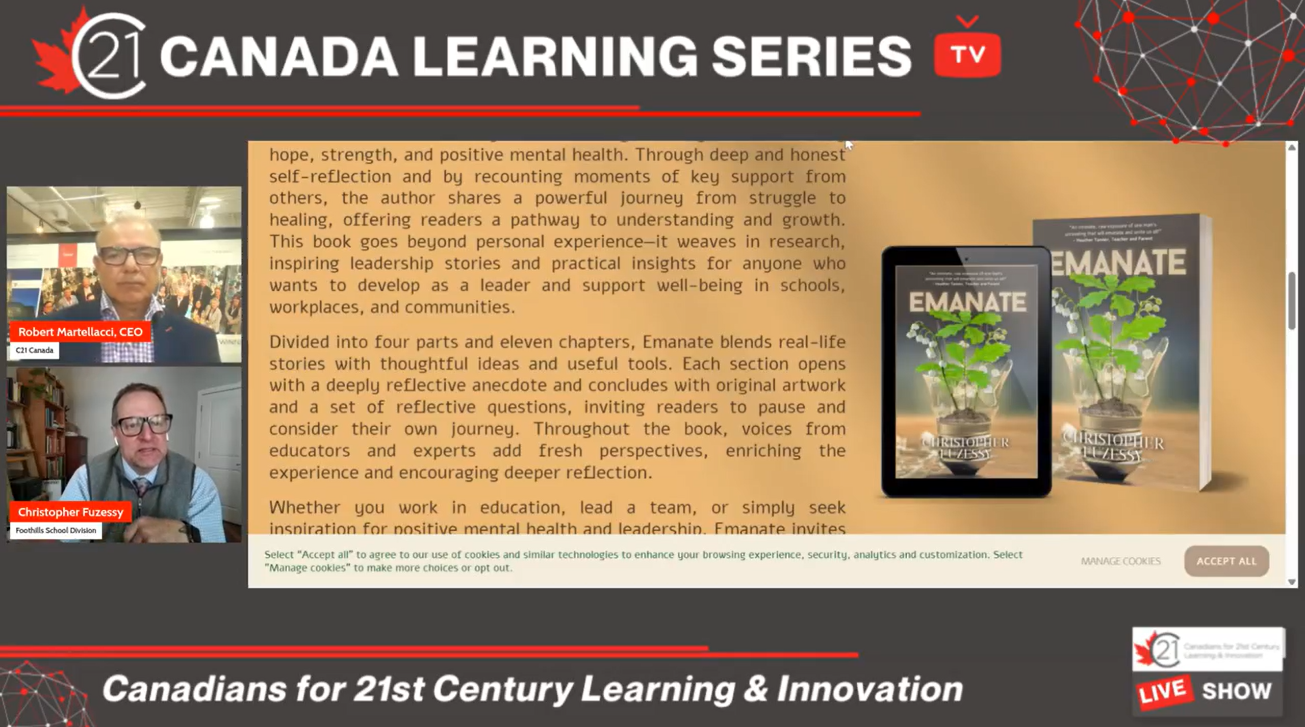 Welcome to the C21 Canada Leader to Leader Podcast, brought to you by C21 Canada—Canadians for 21st Century Learning & Innovation. Be sure to check out our latest C21 Task Force Report on AI, available now at c21canada.org. I’m your host, Robert Martellacci, Co-founder & CEO C21 Canada and the MindShare Learning Media & Consulting. Each episode, we spotlight exceptional leaders from across the country who are shaping the future of learning through innovation, courage, and human-centred leadership. Today, I’m thrilled to welcome Dr. Christopher Fuzessy, PhD, Superintendent of Education with the Foothills School Division in Alberta. Chris is a respected system leader, a valued member of the C21 CEO Academy, and the author of an insightful and deeply personal new book titled Emanate. Chris, it’s wonderful to have you here—and congratulations on the publication of Emanate.