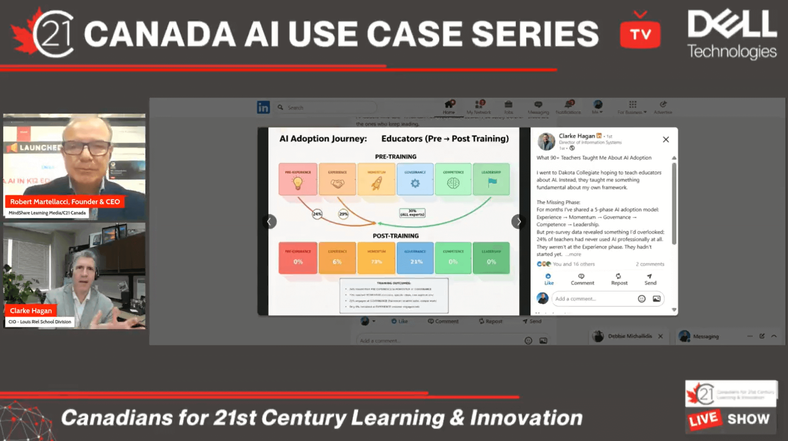 Welcome to the C21 Canada AI Leadership Series, where we spotlight system leaders advancing innovation and responsible AI across Canadian education. I’m Robert Martellacci M.A. EdTech Martellacci, Co-founder and CEO of C21 Canada, and today I’m pleased to be joined by Clarke Hagan, Chief Information Officer at the Louis Riel School Division in Manitoba. Clarke is not only leading AI transformation within LRSD, but also contributing nationally as a member of the C21 CIO Alliance Committee — collaborating with fellow CIOs across Canada to shape practical, human-centered AI leadership. As part of Round 3 of the C21 Dell AI Use Case Project, Clarke and his team have been advancing a thoughtful AI adoption journey grounded in governance, competence, and leadership. Clarke, welcome — it’s great to have you with us.